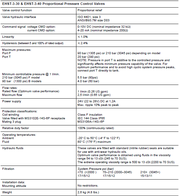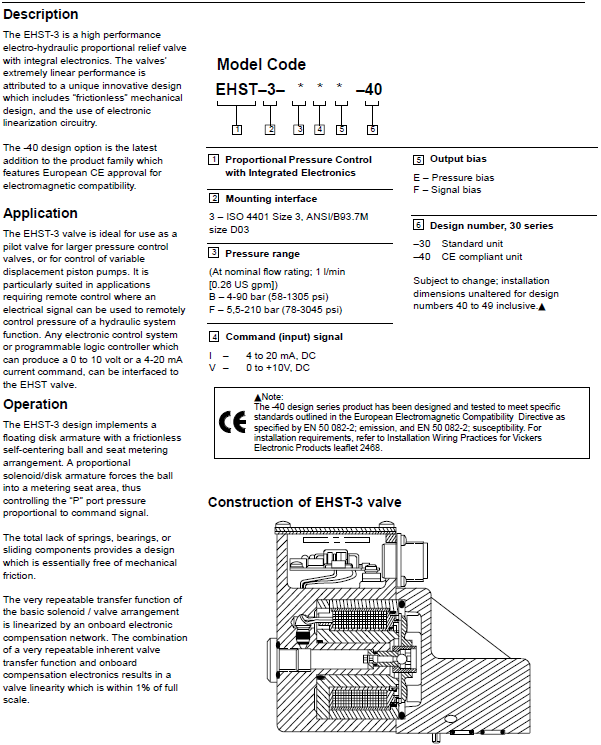 威格士比例溢流閥EHST-3閥門是理想的用于較大壓力控制閥的先導(dǎo)閥?;蛴糜诳刂瓶勺兣帕炕钊?。它特別適用于需要遠(yuǎn)程控制的應(yīng)用,其中電信號可以用于遠(yuǎn)程控制液壓系統(tǒng)的壓力功能。任何電子控制系統(tǒng)或可編程邏輯控制器,可以產(chǎn)生一個0-10伏或4-20毫安電流命令,可以接口到EHST閥門。